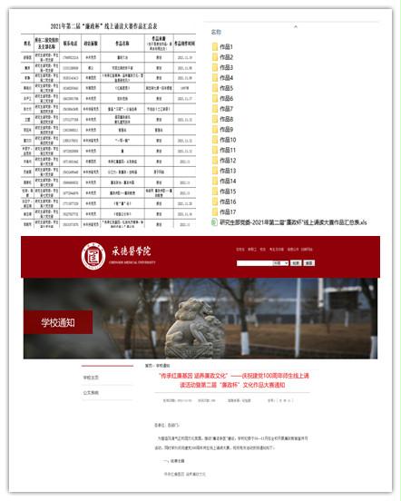 为积极响应学校廉政教育宣传月活动的号召,研究生学院党委开展廉政教育宣传月系列活动。11月1日,研究生学院党委书记苗光新主持并召开“廉政教育”专题学习部署会。11月5日至20日,研究生学院党委全体党员采取个人观看和集体交流学习的形式开展“学习强国”廉洁文化云课堂系列学习活动。11月2日至16日,开展医学科研诚信专项培训活动,规范医学研究生科研行为,提高诚信意识,遵守诚信原则,营造崇尚科研诚信的良好风气。研究生学院全体教职工和1287名研究生采用线上培训的方式,进行医学科研诚信专项培训并获得证书。11月16日,组织参加学校举办的“科研诚信与学风建设学术讲座”和“传承红廉基因 涵养廉政文化”——庆祝建党100周年师生线上诵读活动暨第二届“廉政杯”文化作品征集活动。研究生学院党委学生第六党支部员新昊同学的“以己力,敬廉政,创和谐”获得一等奖,16件作品获得优秀奖,研究生学院党委获得优秀组织奖。 此次活动的开展,让研究生学院党委全体党员更加深入地学习了廉洁文化,增强了全体成员的纪律意识和规矩意识,加强了作风纪律建设,营造了更好的干事创业氛围,为建设有特色有影响的医科大学提供了更加坚实的纪律保障。 (点击文中每张图片即可查看原图)