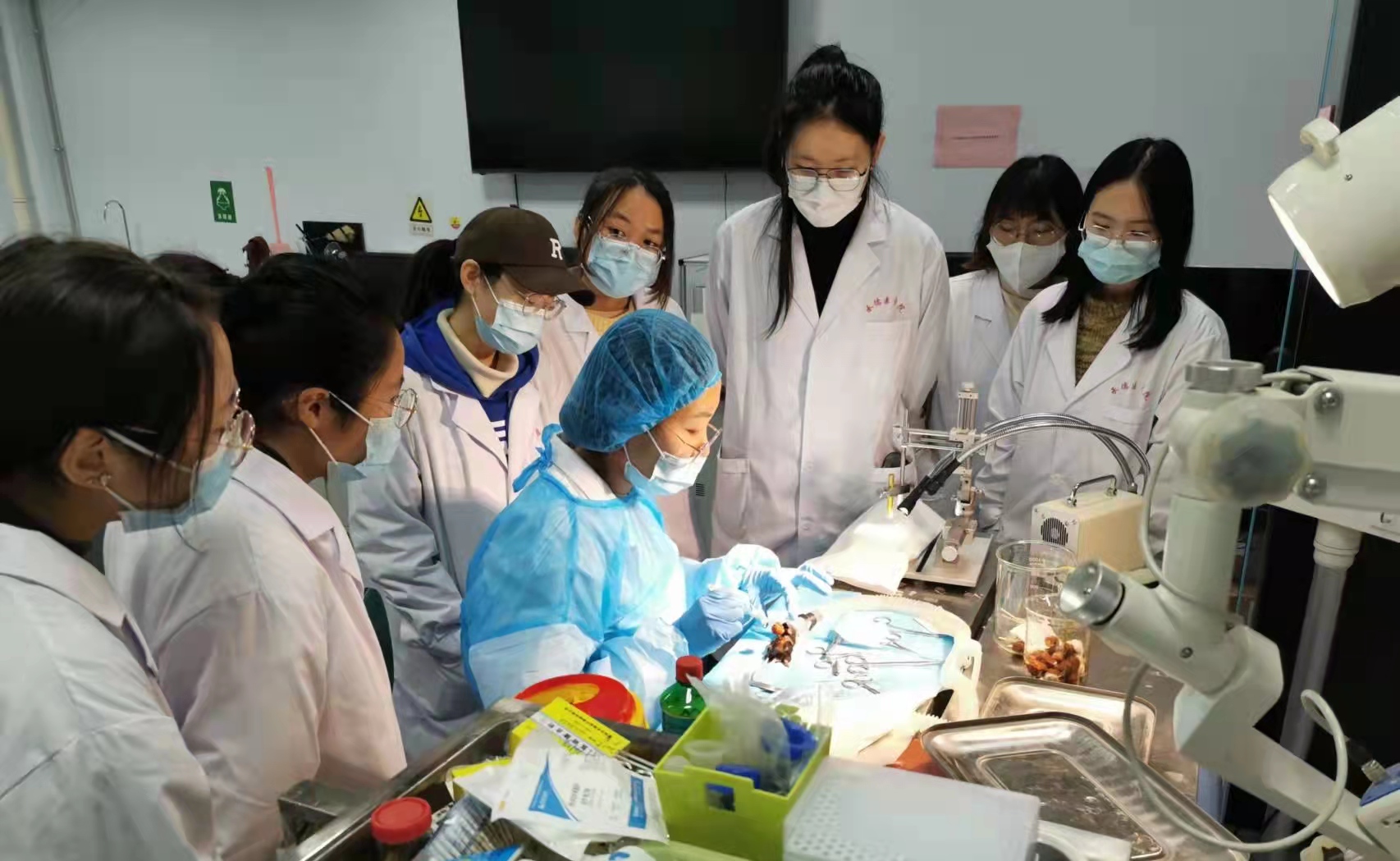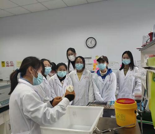 研究生为大学生演示小鼠脊髓损伤模型制备实验 本次活动得到了我校基础医学研究所老师们的大力支持,受到了学生们的好评,提升了学生们敢于探索、勇于创新的意识,促进了学生素质教育的实施。