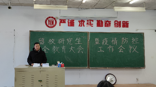 切实做好寒假留校研究生的安全教育工作,维护假期校园安全稳定,提高留校研究生的安全防范意识,2021年12月24日下午,研究生学院在教学楼105Z教室召开了留校研究生安全教育大会暨疫情防控工作会议。研究生学院党委书记苗光新、学生科副科长王婧,各二级学院负责人、秘书、留校研究生的导师和全体留校研究生参加此次会议。 苗光新在会上强调,导师要切实履行导师是第一责任人的义务,督促留校研究生遵守学校疫情防控要求和学校实验室相关规定,对留校研究生负起包括心理辅导、实验安排、生活安排和安全教育等在内的全部责任。 苗光新对留校研究生提出了三点要求:一是希望大家合理安排时间,尽快完成科研实验;二是希望大家严格遵守国家法律和学校的规章制度,维护假期校园的安全和稳定;三是希望大家在假期确保信息畅通,与导师、家长保持联系,遇到异常情况和突发事件及时与导师、学院联系。最后,衷心祝愿每位留校研究生能在学校度过一个充实、快乐、祥和的寒假。