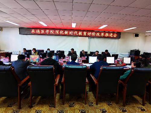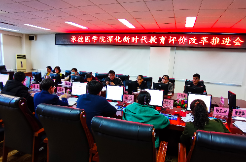 学校党委常委、副校长张凯讲话 发展规划处副处长夏爱华首先从组织领导、学习培训情况、问题梳理及上报情况三个方面对我校新时代教育评价改革进展情况进行了汇报。各部门依次汇报了教育评价改革工作进展情况,并结合部门实际,对下一步改革工作提出了设想。 根据河北省深化新时代教育评价改革实施意见及清单,各部门就《承德医学院深化新时代育评价改革实施方案(讨论稿)》和工作清单中的工作任务、落实举措和完成时限等方面展开了集中讨论,并提出了建设性的意见,为我校深化新时代教育评价改革实施方案的不断完善提供了有力支撑。