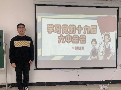 展团旗,唱团歌 展团旗,唱团歌后,开展了“学习十九届六中全会精神”主题团课。团支书具体讲解党的十九届六中全会通过的《中共中央关于党的百年奋斗重大成就和历史经验的决议》(以下简称《决议》)的主要内容和重要意义。《决议》总结了百年来中国共产党为中国人民谋幸福、为中华民族谋复兴所进行的不懈奋斗,体现了无数共产党人不变的初心和使命,深刻揭示了“过去我们为什么能够成功、未来我们怎样才能继续成功”。班长号召大家通过“学习强国”学习平台不断深入学习相关栏目。同学们广泛交流,热烈发言。