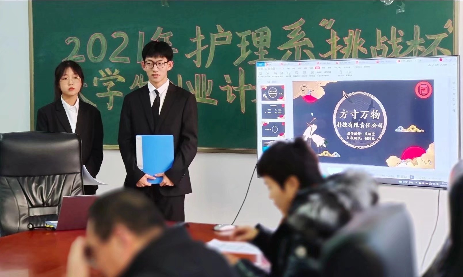 12月3日下午两点,护理系在实验楼104教室举办2021年 “挑战杯”大学生创业计划竞赛。临床技能教学中心副主任张学军、护理系党委书记王亦娜、临床技能教学中心教学秘书庞建会、涉外护理学教研室副主任张荣、2018级年级辅导员齐新玉出席竞赛并担任评委。 本次大学生创业计划竞赛共计28支团队参赛。赛前,各团队在指导教师的帮助下,创新思维、精心准备。赛中,各团队按照抽签顺序依次进行作品展示,并阐述了各自团队的科研思路和调研结果等。赛后,评委老师对各团队分别进行了提问,并提出了具有针对性和指导性的改进建议,让学生与评委之间产生了思维的碰撞,也为团队进一步的科学研究指明了方向。本次创业计划竞赛历时四个小时,评委老师秉持着公平、公正、公开的原则,最终评选出8支参赛团队进军校级决赛。 本次“挑战杯”大学生创业计划竞赛在学生团队刻苦钻研和指导教师的精心帮助下圆满完成。竞赛展现了学生的科研热情,提高了学生的创新能力和创新意识。新世纪是一个创新的世纪,新时代是一个创新的时代,参赛选手们表示,将会不断学习、不断努力,争做社会需要的、具有创业能力的创新型人才! (点击每张图片即可查看原图)