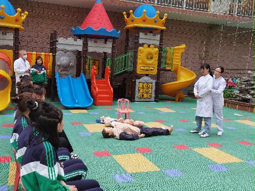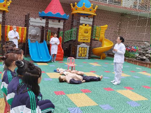 与幼儿园老师们互动 教工党支部为了加强对预备党员的培养工作,制定了详细的培养方案,要求预备党员积极参与党内的各项活动。在活动中感受教工党支部的战斗堡垒作用,在以后的工作中用自己的知识和技能为群众办实事,办好事,充分体现中国共产党为人民服务的宗旨。预备党员杨青建表示要以此次活动为契机,努力提高自身素质,更好地为广大群众服务,为群众办实事。 此次活动让更多的人学习和掌握了现场急救知识和技能,使大家在关键时刻能做到自救互救,让自己的亲人、朋友、同事等受益。今后,教工党支部会继续开展“我为群众办实事”公益志愿服务活动,在活动中把知识传授给人民群众,为社会服务的同时体现自身价值。