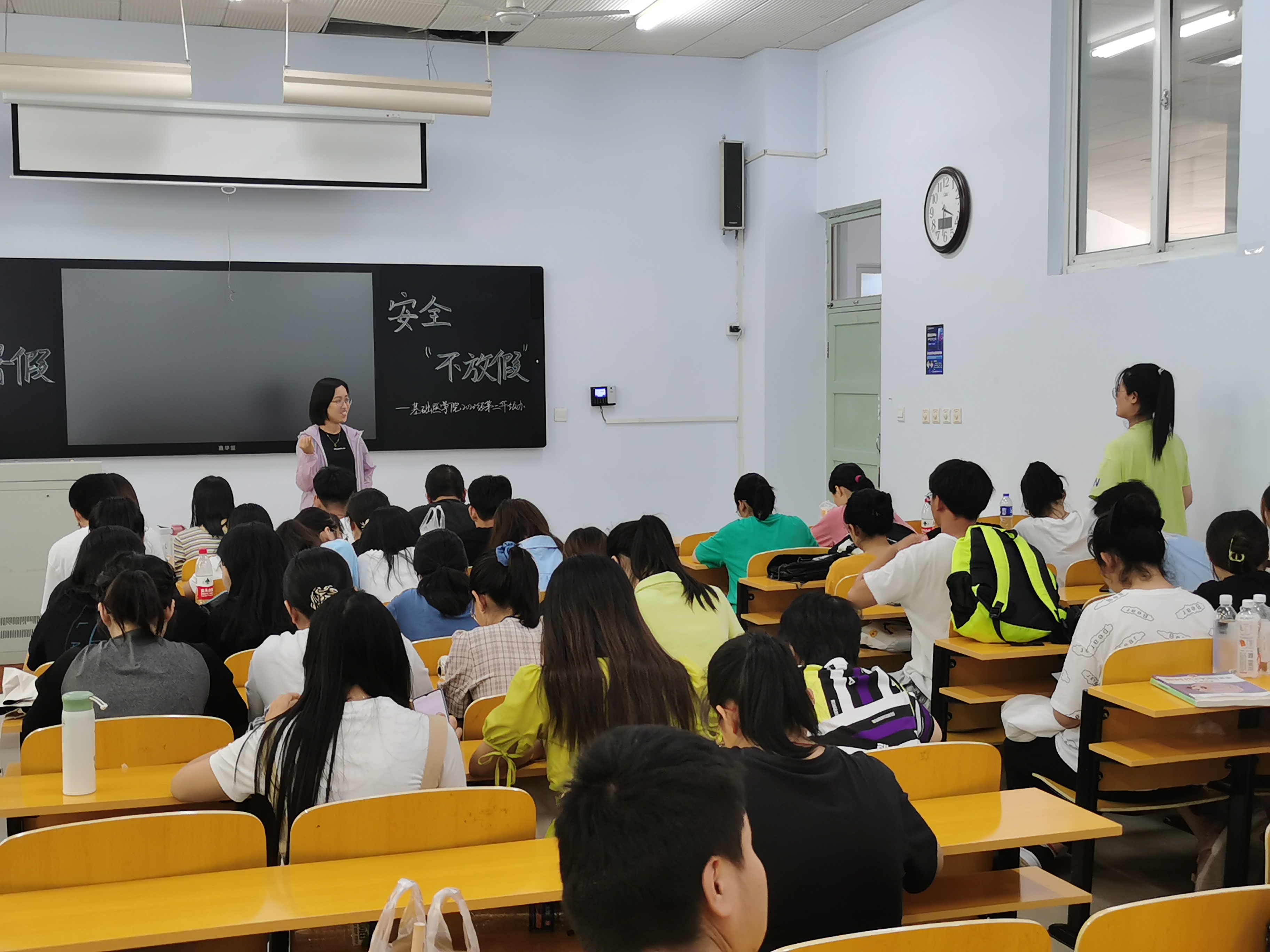 为提高同学们安全意识,保障同学们生命健康,帮助同学们度过一个安全、健康、愉快而又有意义的假期,基础医学院2020级第二年级办于2021年6月29日—30日在教学楼召开了假前安全教育年级大会。会议由辅导员老师陈欣欣、王途主持,2020级麻醉学、医学影像、康复治疗学、口腔医学、医学检验技术专业全体学生参加。 疫情防控常态化,筑牢防线不放松 当前全球疫情仍在蔓延,防控工作要突出“常态”“精准”,本年级将持续抓好暑假期间学生新冠肺炎疫情防控工作。辅导员老师再次深入普及了疫情防控的相关知识;传达了学校疫情防控相关要求;进而强调暑假期间全体学生要高度重视个人及家人疫情防护的重要性:及时关注疫情相关新闻信息,不前往疫情中高风险地区,针对假期必要出行和人员密集流动场所,切实做好个人防护,遵守属地和出行目的地疫情防控规定,保证做好每日“易班”健康信息填报和定位打卡,及时上报疫情涉及情况。与此同时,在巩固本年级“应接尽接”疫苗接种成果的基础上,努力践行医学生的担当使命,加强对接种政策、疫苗安全性有效性的宣传,动员更多人群积极接种、主动接种。 (点击每张图片即可查看其大图)