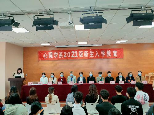 2021年9月19日,心理学系2021级新生见面会暨新生入学教育于护理心理楼五楼实训室举行。心理学系全体领导教师以及2021级全体新生参加会议。 (点击图片即可查看其大图)