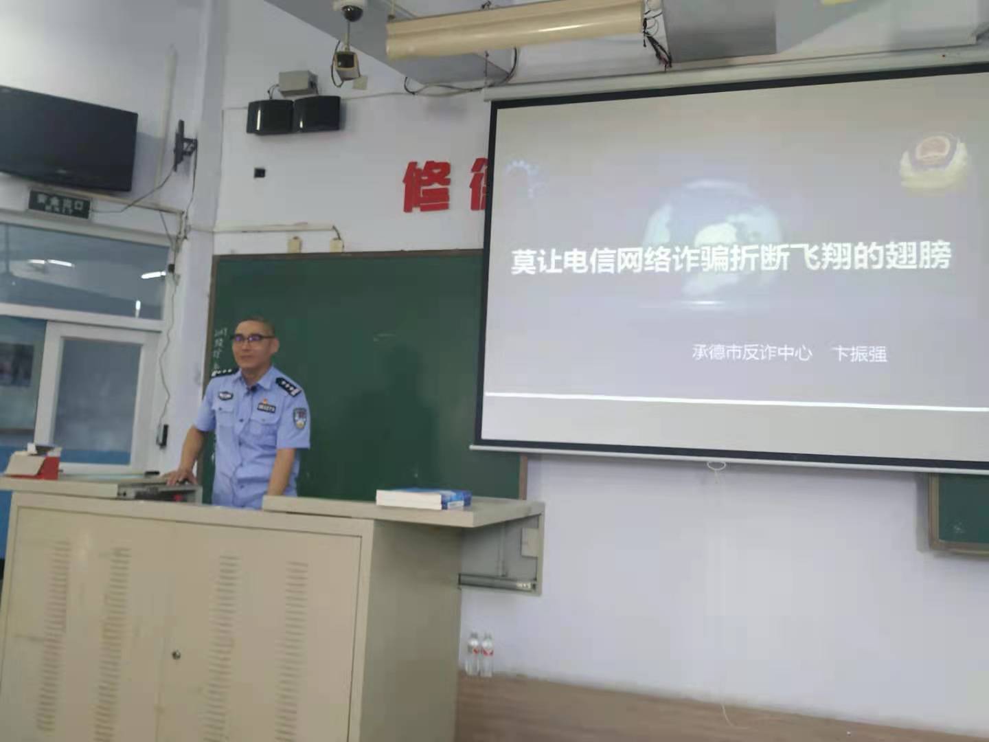 承德市反诈中心副队长卞振强作“莫让电信网络诈骗折断飞翔的翅膀”宣讲