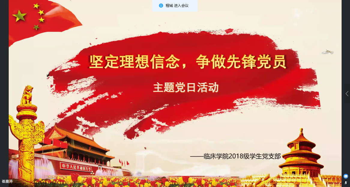 三位党员代表在活动中分享了自己的心得感悟,第一党小组代表申宇镓同志表示,党员不仅是一个身份,更是一个责任,现在的中国处在蒸蒸日上的时代,处在繁荣富强的时代,学生党员正在青春年华,更要团结起来,树立远大理想,发挥青年力量。 临床学院2018级辅导员老师李庆林、于淼分别发言做会议总结,她们强调作为党员首先要有远大理想,但是不能空有理想,还要脚踏实地做事,在实践中不畏艰难、勇于担当、真抓实干,用青春汗水和勤劳双手创造业绩,用实际行动助力中华民族伟大复兴的事业。 此次专题党日活动,使全体党员同志燃起坚定理想信念的激情,加强了同学们对理想、对人生的思考,党员们将更加积极地按照习总书记对党员和青年学生的要求,以实际行动投入到争做优秀共产党员的实践中去。