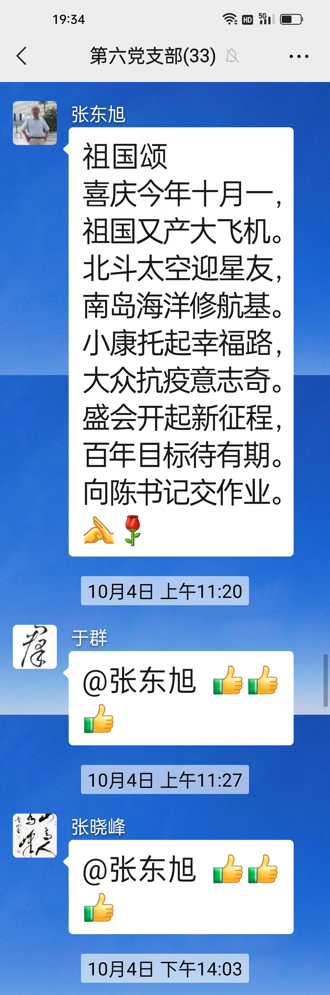 金秋十月,红旗飘扬,枫丹霞彤。离退休党委根据疫情防控形势,创新活动方式,线上线下相结合举办红歌大赛、诗画作品征集、健康大讲堂微课堂等系列活动,庆国庆,度重阳,喜迎二十大胜利召开。 “红歌大家唱,颂歌献给党”线上红歌比赛 为热烈庆祝中华人民共和国成立73周年,离退休人员管理处组织线上“红歌大家唱,颂歌献给党”红歌比赛。广大离退休党员满怀激情录制音频、视频,发送到微信群,欢度国庆;老党员用饱含深情的歌声倾情演唱《我和我的祖国》《祖国不会忘记》等爱国主义歌曲,表达对党的挚爱之情;受老党员爱党热情鼓舞,联系班的同学们纷纷展示才艺,精心录制短节目微视频、红歌音频等,与老党员共同欢度国庆,师生互动中潜移默化传承中华优秀传统文化,赓续红色血脉。 (点击每张图片即可查看原图)
