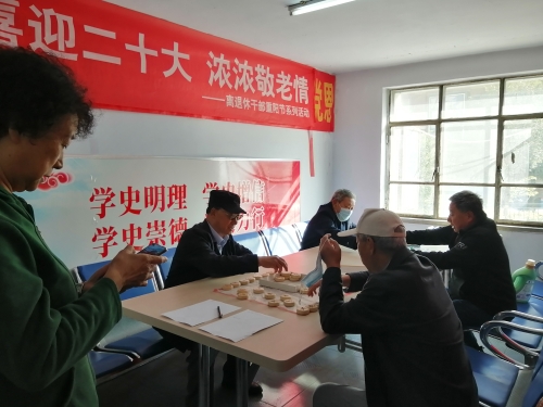 棋牌比赛 国庆、重阳节系列活动的开展,营造出浓厚爱党敬老喜迎二十大胜利召开喜庆氛围,丰富了广大离退休职工的文化娱乐生活,弘扬了中华民族尊老、敬老、助老的传统美德,有效促进了老党员和青年学生之间的沟通交流,充分展现出我校离退休职工退休不退色的精神风貌。有效传递党的温暖,将“老有所养、老有所乐、老有所为”落到实处,进一步引导老同志坚定“四个自信”,增强“四个意识”,坚决做到“两个维护”,为构建和谐社会发挥正能量,力所能及为建设医科大学做出贡献。