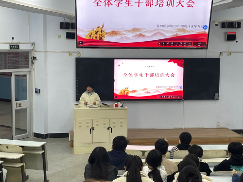 为凝聚青春力量,培养大学生的担当与服务意识,以更加饱满的精神风貌迎接党的二十大胜利召开,基础医学院2021级第一年级办于2022年10月12日12:30在教学楼308教室召开全体学生干部培训会。我校思想政治理论课教师李静、基础医学院辅导员王途以及基础医学院2021级临床医学专业144名学生干部参加本次会议。 李静老师围绕学生干部的职责、学校疫情防控管理相关要求以及学生安全教育等方面开展培训,并要求学生干部:一是提高政治站位,培养大局意识,能够从学校和学院的角度谋划工作;二是要提升自己的工作能力,多与师生交流,勤于思考,积极组织活动并注意方法的创新;三是要发扬承医学子的奋斗精神,学生干部要注意提升个人素养,要精益求精地完成工作任务,努力实现自身成长和工作成效两不误,做创先争优的青年人;四是要学会分析和研判,面对当前纷繁复杂的网络信息,要学会引领同学们提高自身网络行为规范水平,共同造就清朗的校园网络文化环境。 (点击每张图片即可查看原图)