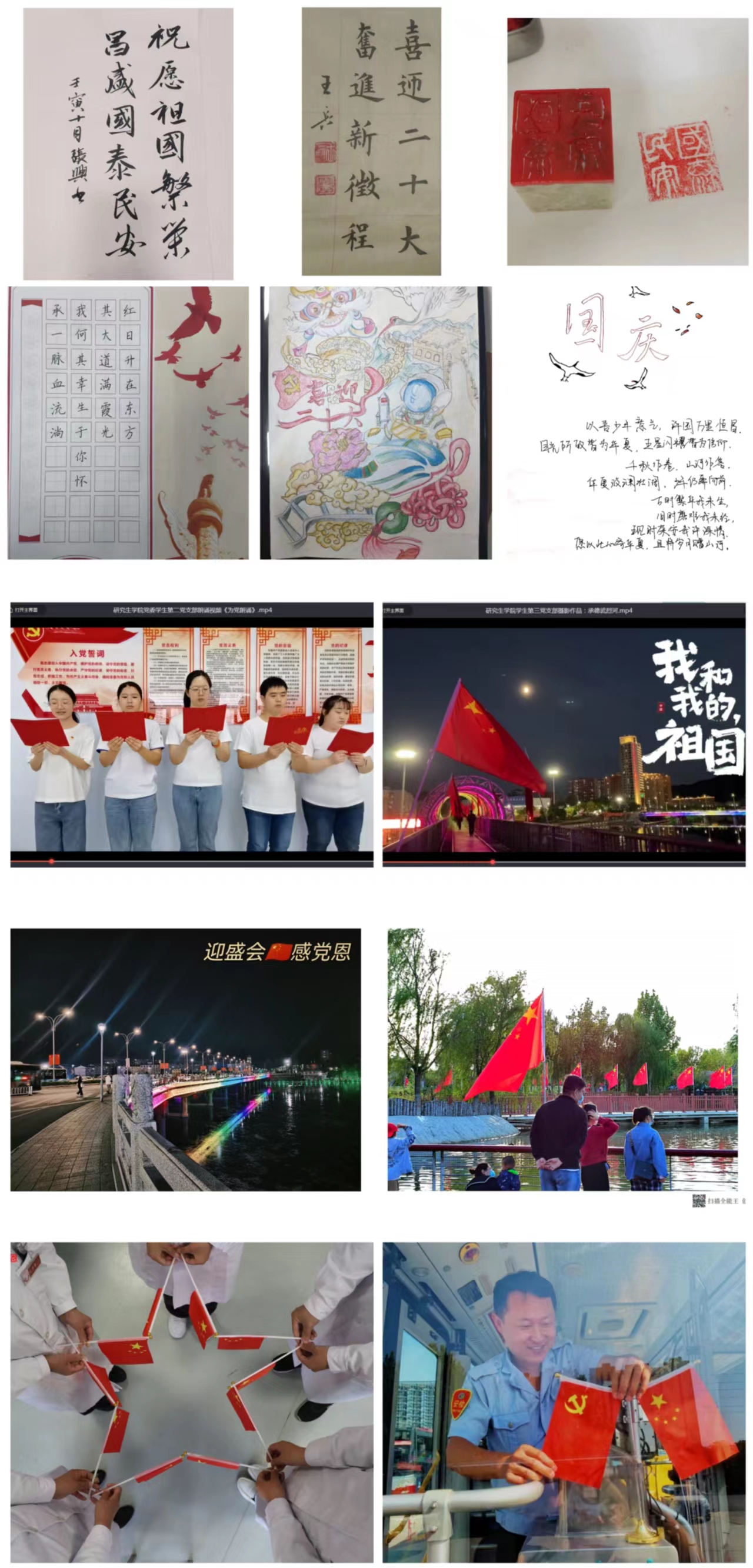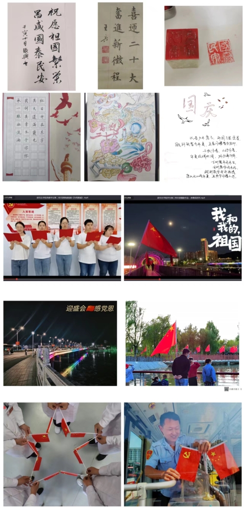 开展“喜迎二十大 欢度国庆节”主题党日 开展“迎盛会、感党恩”作品征集活动。9月26日至10月10日,学院党委面向全体师生征集“迎盛会 感党恩”主题的原创作品。广大师生热情参与,活动共征集到书画、摄影、诗歌、朗诵等类作品60余份,一份份生动精彩的作品充分表达了承医师生对党和国家的热爱与深情,以及对党的二十大胜利召开的期盼与祝福。