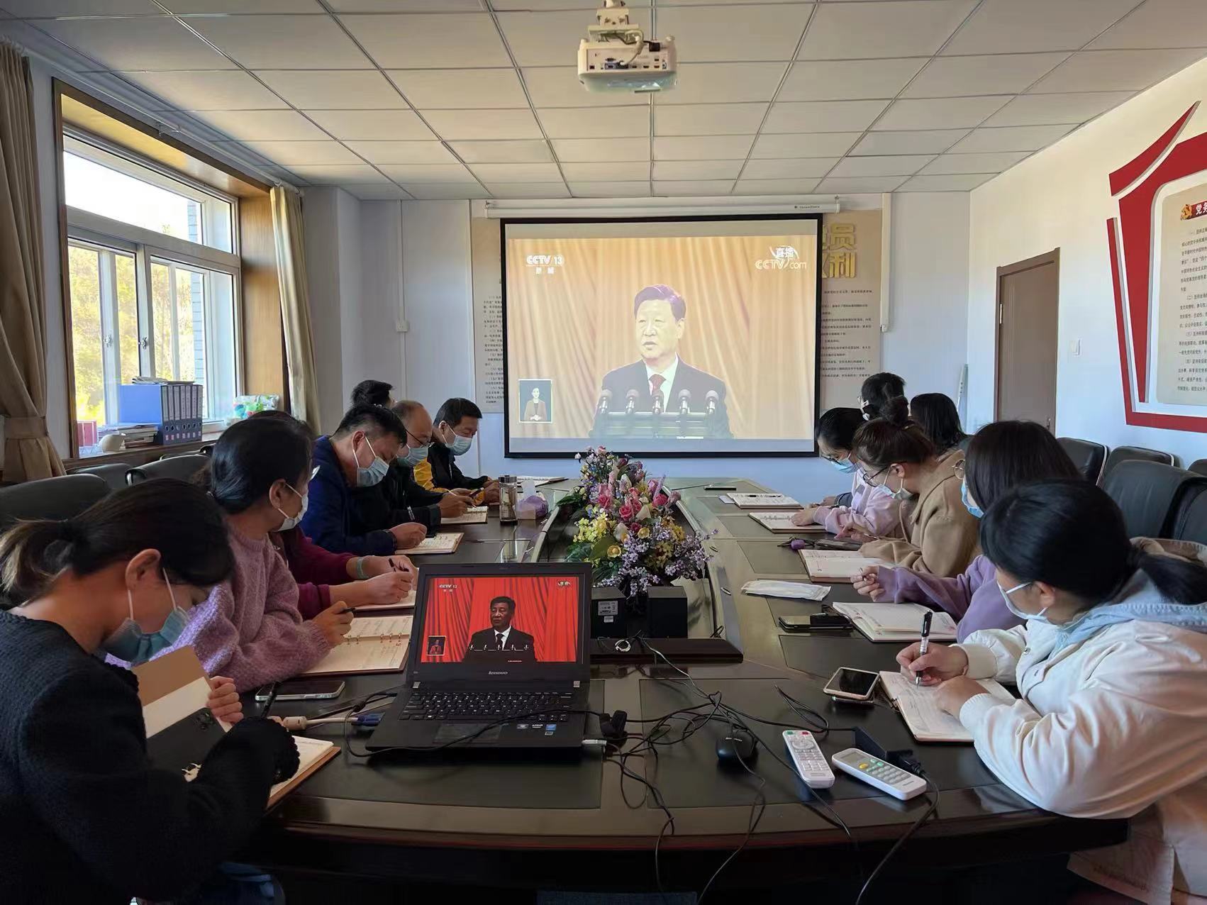 2022年10月16日上午10:00,学校党委理论学习中心组在412会议室集中收看中国共产党第二十次全国代表大会开幕会,认真聆听习近平代表第十九届中央委员会向大会作报告,全体校领导、党委委员、纪委委员参加。各二级党组织同步组织党员、干部、师生以部门为单位集中收看收听。 观看结束后,大家纷纷表示,报告全面总结了新时代以来坚持和发展中国特色社会主义取得的重大成就和宝贵经验,科学谋划未来5年乃至更长时期党和国家事业发展的目标任务和大政方针,团结和激励全国各族人民在党中央的坚强领导下,高举中国特色社会主义伟大旗帜,全面贯彻新时代中国特色社会主义思想,弘扬伟大建党精神,自信自强、守正创新,踔厉奋发、勇毅前行,为全面建设社会主义现代化国家、全面推进中华民族伟大复兴而团结奋斗。 学校党委书记盛婉玉总结强调:学习、宣传贯彻好党的二十大精神是下一步学校党委重大政治安排,将按照省委要求,组织全体党员干部持续深入学习、深刻领会、全面贯彻党的二十大精神,原原本本、逐字逐句学习党的二十大报告,切实把思想和行动统一到大会精神上来,紧紧围绕党的二十大报告确定的主题,深入理解新时代新征程中国共产党的使命任务,牢牢把握前进道路上的重大原则,深刻认识全面建成社会主义现代化强国的战略部署,深刻认识全面加强党的领导和全面从严治党,深刻认识党用伟大奋斗创造的百年伟业和用新的伟大奋斗创造新的伟业,为建设中国式现代化,实现中华民族的伟大复兴提供坚强的思想保证。 (点击每张图片即可查看原图)