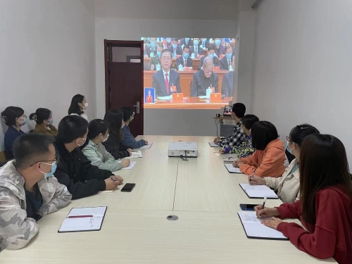 学校党委委员、纪委委员在行政楼412会议室集中收看开幕会
