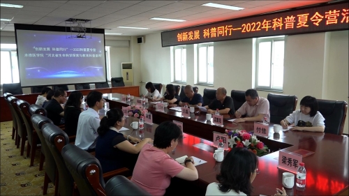 原文链接:河北省科技厅官网 2022年7月-9月,为进一步贯彻落实习近平总书记关于科普工作的重要论述精神,激发中小学生学科学、爱科学的热情,提高科学素养,丰富暑期生活,由承德医学院河北省生命科学探索与教育科普基地主办、承德市科技局、承德市教育局、承德医学院科技处协办的以“创新发展 科普同行”为主题的科普夏令营活动成功举办,让广大中小学生在暑期走进了科学的海洋。 7月23日,科普夏令营活动的启动仪式在承德医学院行政楼312会议室举行。承德市科技局二级调研员王亚洲、政策法规与监督科科长孟繁阳、副科长付佳、科技情报研究所所长韩寒、副所长张哲,汇水湾学校校长王磊及承德医学院科普志愿者代表参加了启动仪式,会议由科普基地负责人、学校科技处处长任立群主持。 (点击每张图片即可查看原图)  启动仪式 本次科普夏令营活动以线上讲座方式进行,精心为承德市中小学生准备了7期科普视频: