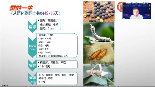 第三期 第三期《遇见蚕宝宝》,志愿讲解员黄露老师以大量精美的图片和生动详实的影像,通过故事、图片、数据等形式讲述了家蚕的结构和生命历程,介绍了家庭养蚕窍门和传统养蚕概况,并就蚕桑产业丰厚的文化底蕴等进行系统的解说,生动有趣的宣讲令观众对蚕桑科技与文化产生了浓厚的兴趣。