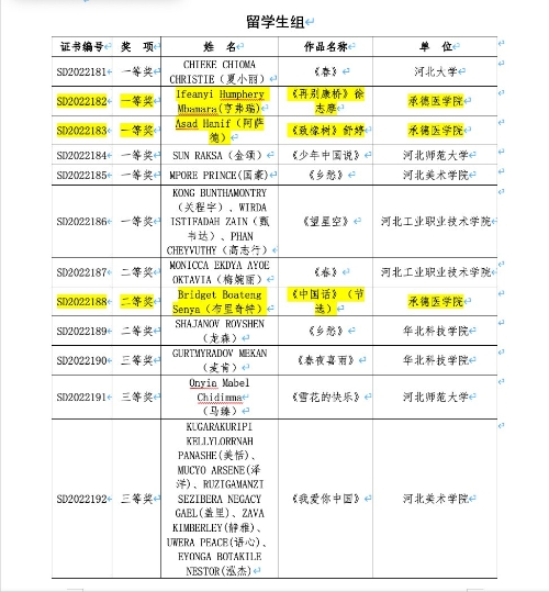 河北省选拔赛留学生组获奖名单