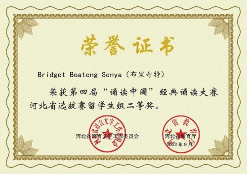 2018级留学生Bridget Boateng Senya获得留学生组二等奖