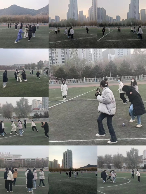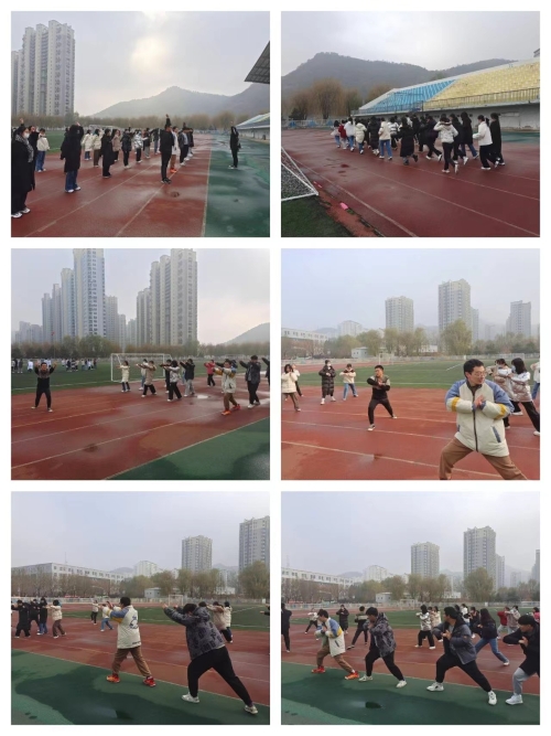 为提高学生身体素质,锻炼学生意志品质,丰富学生课余生活,展现学生个人风采,同时在运动中增强班级凝聚力,展现我校学子敢于拼搏、奋勇争先的良好精神风貌,自2022年10月26日起,护理系2021级全体学生在辅导员魏荣荣的号召下开展了以“加强体育锻炼,展现青春风采”为主题的冬日体育锻炼活动。 本次活动每周由各班体育委员组织开展,体育锻炼广泛征求同学们的意见建议,将趣味游戏与体育运动相结合。各班开展了学习军体拳、丢沙包、“老鹰捉小鸡”、踢毽子、“两人三足”等项目。活动过程充分体现了“趣味”的主题,既有个人竞技水平的展示,又有团队合作竞争的体现,集运动性、趣味性、互动性、安全性、挑战性于一体,营造了“快乐学习、健康生活”的良好氛围。活动中,同学们的加油声、叫好声不绝于耳。 (点击每张图片即可查看原图)