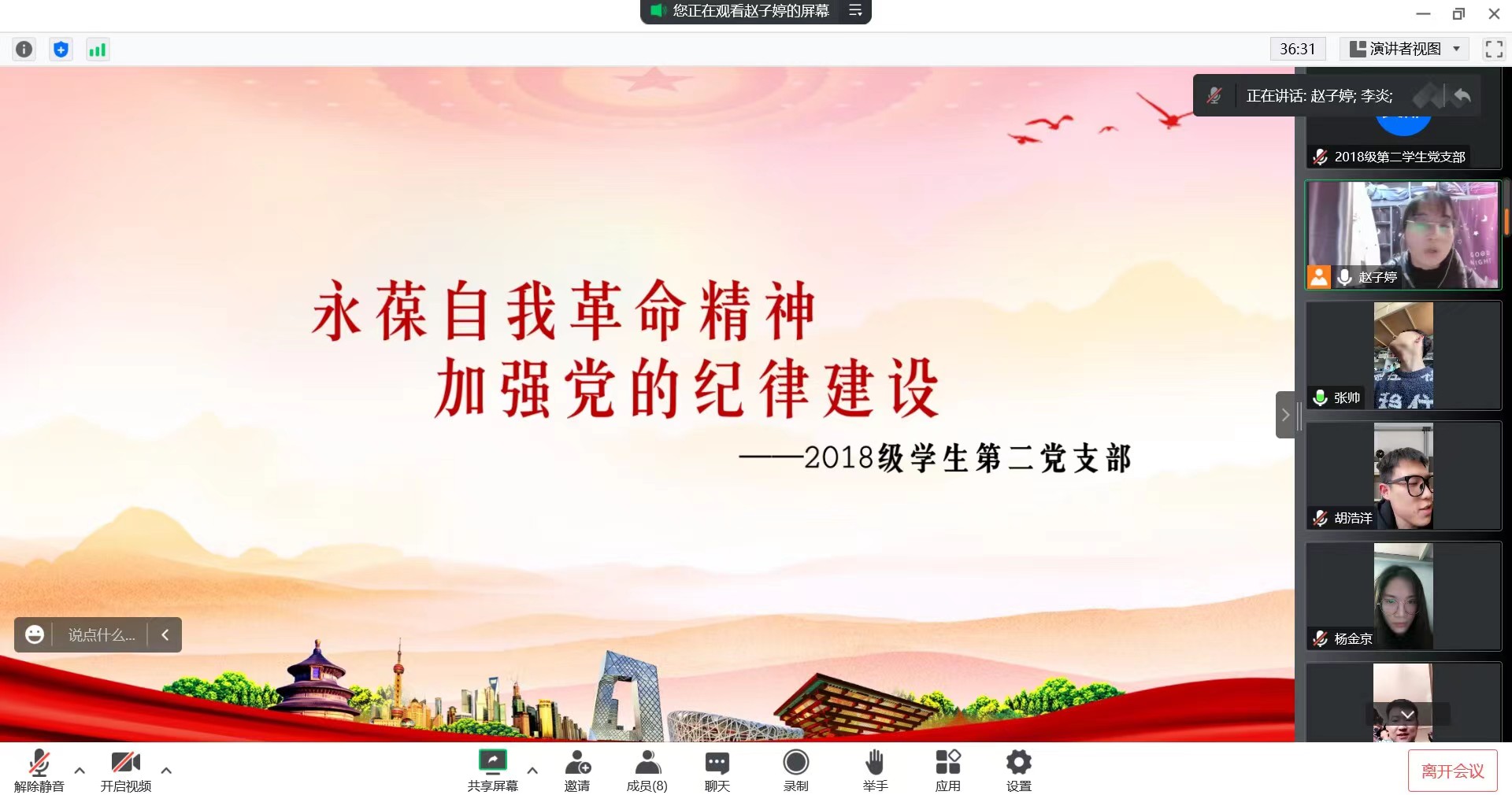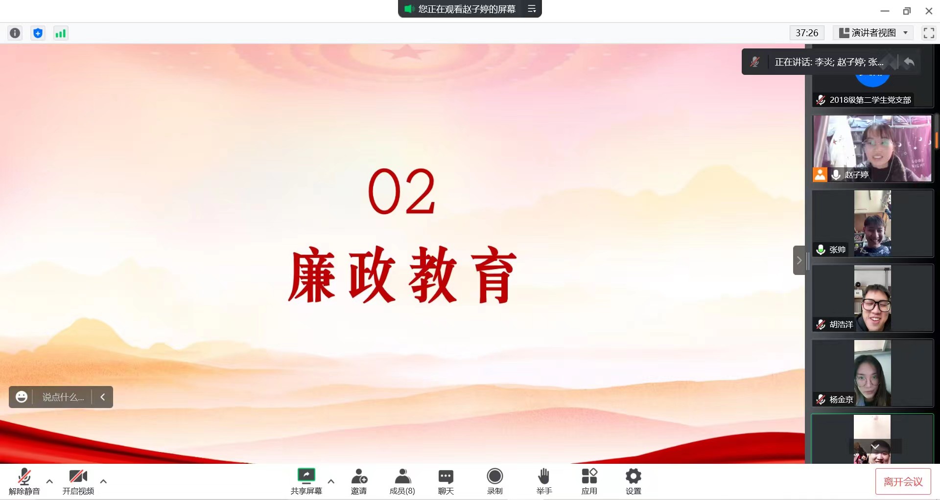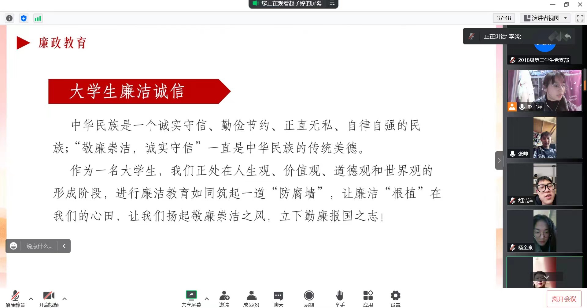 为宣传党的二十大精神,提高大学生科研诚信、廉洁诚信意识,落实高校党风廉政建设精神,根据学校纪检委和临床学院党委关于开展2022年廉洁教育宣传月活动要求,推动廉洁教育宣传月活动走深走实,临床学院2018级学生第二党支部于2022年11月4日—17日开展廉洁教育宣传月系列活动。 组织专题学习 临床学院2018级学生第二党支部按照学校和学院要求,认真组织、系统学习党的二十大精神和习近平总书记关于全面从严治党、党的自我革命战略思想、纪律建设、廉洁文化建设等重要论述等内容,开展“永葆自我革命精神 加强党的纪律建设”专题学习。 (点击每张图片即可查看原图)