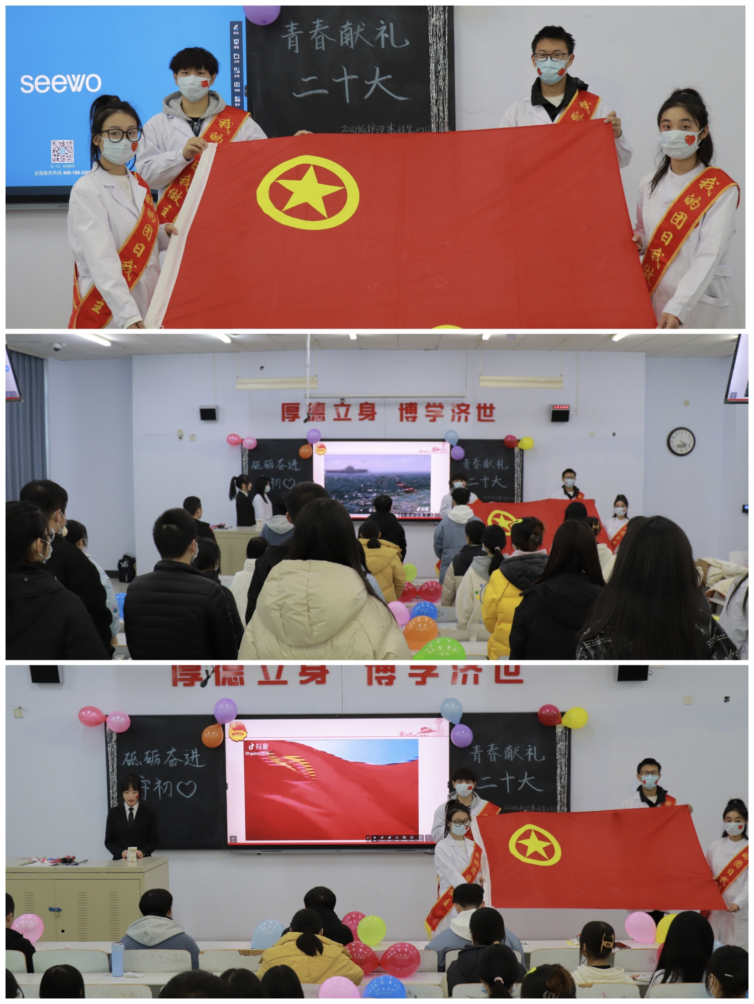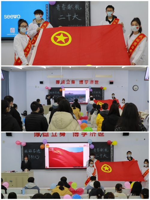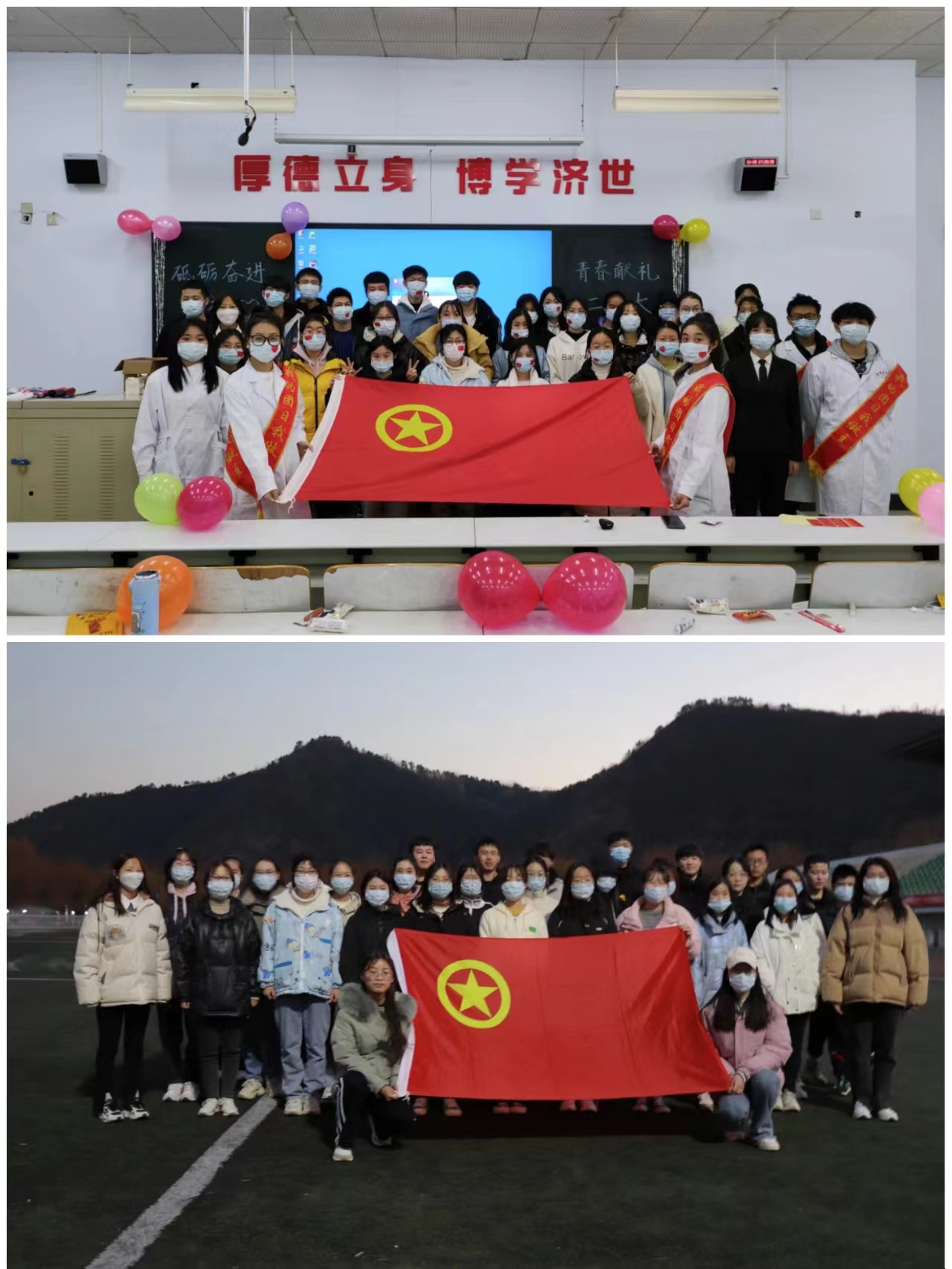 为学习宣传党的二十大精神,强化广大团员青年的政治品格,延续红色血脉,夯实精神之本,护理系2021级护理学第四团支部于2022年11月15-16日在教学楼202教室和阳光运动场举办了以“砥砺奋进守初心,青春献礼党的二十大”为主题的团日活动。本次活动由宣传委员齐梦主持,护理系2021级护理学第四团支部全体成员参加。 11月15日,在教室201进行活动第一部分。伴随着铮铮誓言与嘹亮团歌,团日活动正式开始,主持人向同学们介绍活动主题、背景,播放习近平总书记对青年学生寄语视频,与支部成员共勉;团支书未子怡来为大家宣讲党的二十大金句;团员代表张冰冰和王丹彤进行了“请党放心,强国有我”的朗诵,以抒发对党的热忱。最后在互动环节,同学们积极参与党史问答,形成以赛促学的浓厚氛围。 (点击每张图片即可查看原图)
