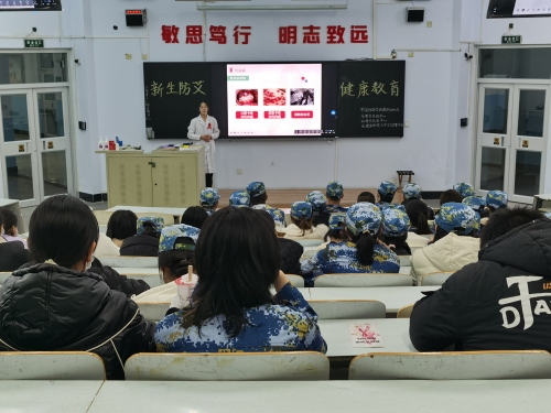 活动现场 此次活动由九名经过层层选拔并拥有为期两个月专项培训经历的宣讲员分两天共十一场次进行宣讲,主要围绕艾滋病的起源及流行状况、艾滋病病毒与艾滋病、艾滋病的传播与预防、我国预防艾滋病的相关政策与措施以及大学生红丝带协会五个方面讲解,宣教过程中穿插观众互动、视频播放、有奖竞答及防艾宣誓等环节。大一新生积极参与其中,取得了很好的宣传教育效果。