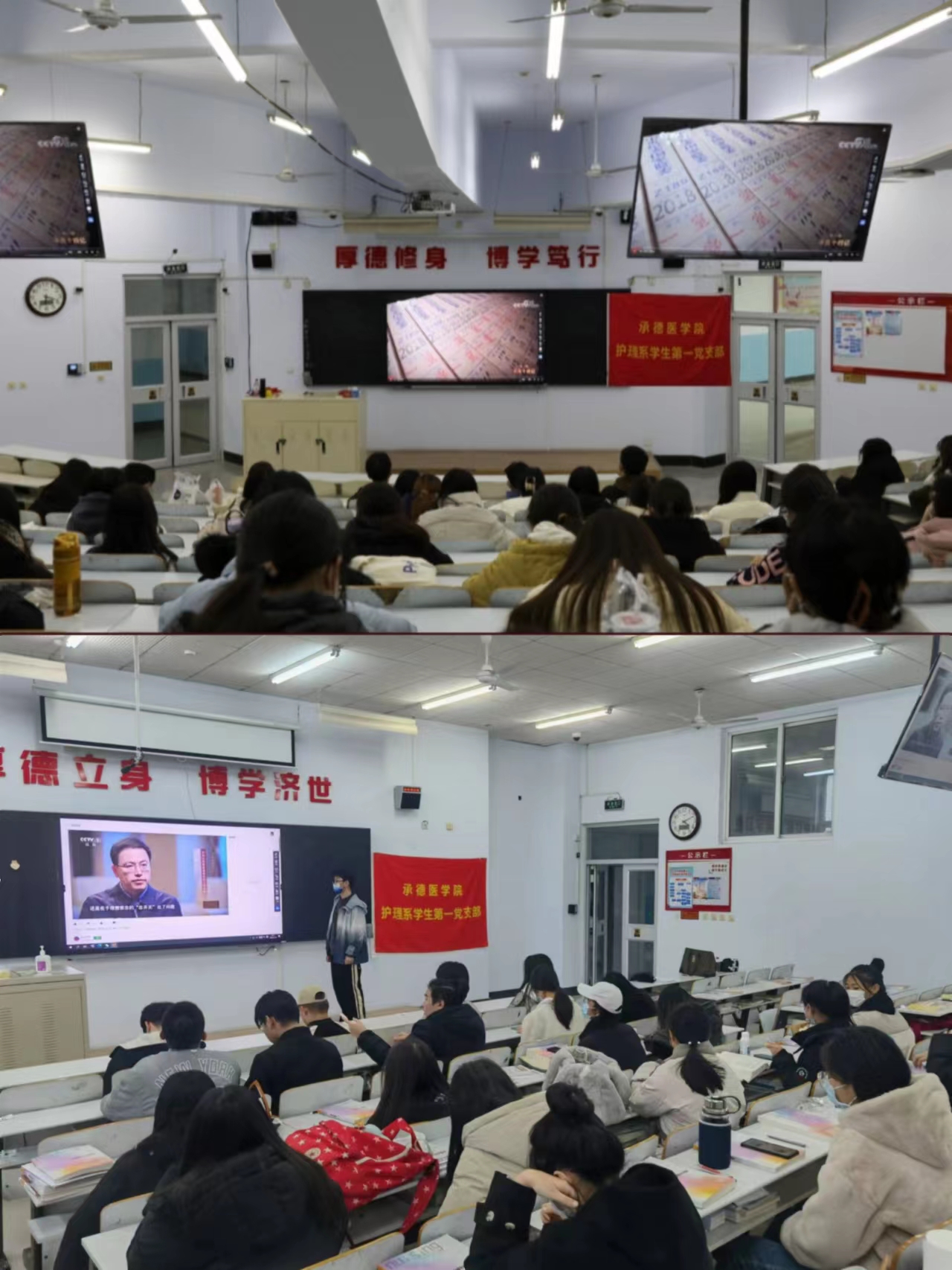 为深入学习贯彻中国共产党第二十次全国代表大会精神,进一步推进学校廉政文化建设和廉洁教育工作,大力营造崇廉尚洁的校园文化氛围,护理系2021级联合护理系学生第一党支部于2022年11月举办“坚守廉洁诚信底线,弘扬浩然清风正气”主题系列活动。本次活动共分为五部分。 “敬廉崇洁,诚实守信”诚信教育活动 11月8日下午,开展“学以载道,诚信为本”主题班会活动,班会从培养学生廉洁修身,诚实守信等方面展开。在“诚信学习大家谈”活动中,同学们积极讨论并将自己所思所感以便利贴形式张贴到黑板上。班级制定“班级诚信公约”,同学们学习后郑重签字,促使廉洁诚信思想深入人心。 (点击每张图片即可查看原图)