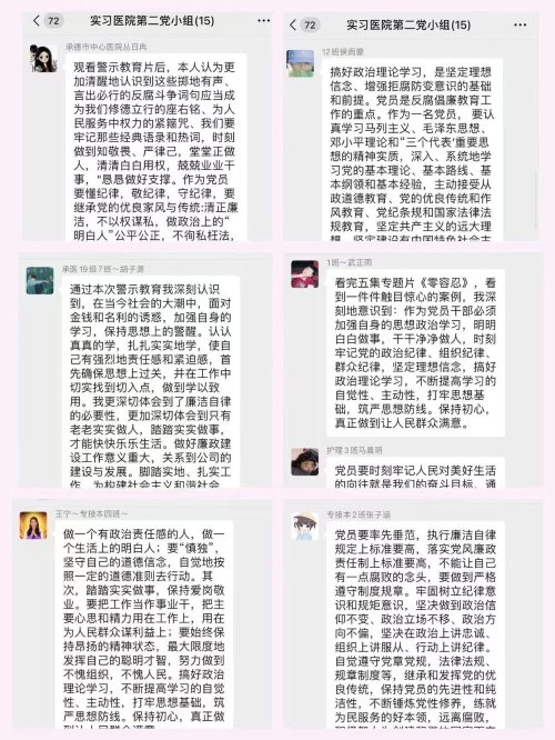 党支部学员观后感 此次活动的开展,使同学们深受启发,大家纷纷表示在今后的医学工作中要廉洁修身,树立廉洁意识,确立诚信守法、廉洁自律、爱岗敬业的职业观念,牢固树立正确的世界观、人生观、价值观和权力观。讲党性、重品行、作表率,进一步筑牢廉洁防线,打造风清气正的社会环境。
