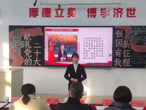 为深入学习并贯彻落实党的二十大精神,筑牢理想信念之基,厚植爱国情怀,引导我校学生做担当民族复兴重任的时代新人,2022年11月22日14:00,社联水滴演讲社联合学校党委宣传统战部、青年政治宣进委员会、生物医学工程系党总支、反邪教科普宣传志愿者服务队在教学楼201教室开展了“献礼党的二十大,强国有我新征程”演讲比赛。 本次活动特邀请党委宣传统战部部长王海民、机关党委书记袁婧、宣传统战部副部长李小彬、马克思主义学院直属党支部副书记李静、生物医学工程系党总支副书记张静敏出席担任评委。 (点击每张图片即可查看原图)