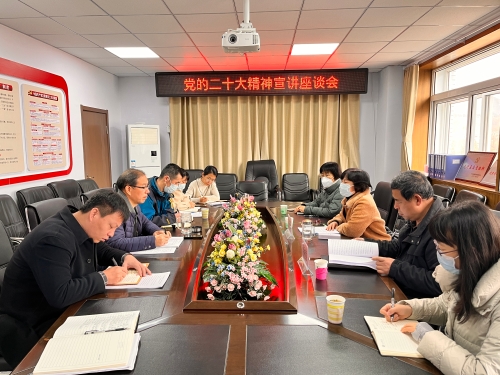 座谈会现场 马克思主义学院直属党支部副书记李静代表思政课教师结合近期相关工作,谈了学习党的二十大精神体会,并向校领导汇报了思政课教师宣讲团党的二十大精神宣讲提纲。 盛婉玉对宣讲提纲进行点评,并向思政课教师全面系统地解读党的二十大报告的相关内容。她强调:一是学习宣传贯彻党的二十大精神是学校当前和今后一个时期的首要政治任务,各级党组织、单位、部门要通过全覆盖、全参与的方式,推动党的二十大精神在师生中落地生根;二是马克思主义学院的教师们具有专业的理论功底,是党的二十大精神宣讲的重要力量,要先学一步,深学一层,全面系统把握党的二十大精神的丰富内涵和精神实质,做到真学真懂真信;三是要将学习宣传贯彻党的二十大精神和全面落实习近平新时代中国特色社会主义思想“三进”工作相结合,让思想政治理论课在立德树人中发挥应有作用,充分激发我校马克思主义学院思政课教师队伍积极性、主动性、创造性,增强思政课的思想性、理论性和亲和力、针对性,推动思政课建设不断迈上新台阶。 谢利德指出,党的二十大召开以来,我校及时传达学习党的二十大精神,并对学习宣传贯彻工作做出全面安排部署,着力引导广大师生原原本本学、融会贯通学、联系实际学。作为高等医学院校,要牢牢把握高校作为科技第一生产力、人才第一资源、创新第一动力的重要结合点,在服务新时代科教兴国战略中应有所为也大有可为,在推动学校事业高质量发展中强化教育、科技、人才三者深度融合、有机统一、协调推进。 马克思主义学院院长李德臣表示,学校全体思政课教师以高度的政治责任感、使命感深入学习贯彻党的二十大精神,要在学习宣传、贯彻落实党的二十大精神中肩负起“排头兵”的光荣使命;要发挥思政课在立德树人中的主渠道作用,并切实把思想和行动统一到党的二十大精神上来,做好铸魂育人的工作;要充分发挥思政课教师党的二十大精神宣讲团作用,深入到各二级党组织中,将宣讲与实际工作结合起来,在深入学习好、广泛宣传好、贯彻落实好上下功夫、见实效。 学校党政办公室、党委宣传统战部、研究生学院党委相关负责人参加此次调研座谈会。