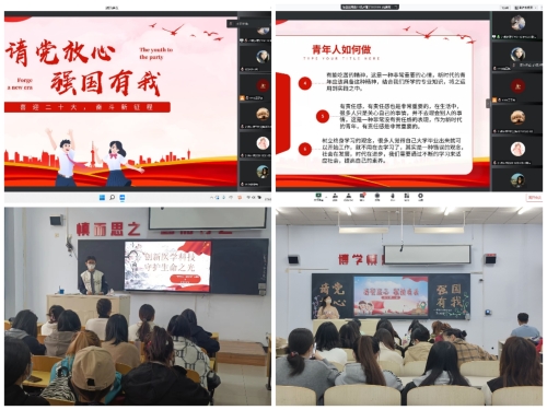 为进一步加深广大青年学子对新时代中国的伟大成就的了解,明确肩负的使命,坚持听党话、跟党走,走好新时代长征路,护理系2021级于2022年10月举办了“请党放心,强国有我”的主题班会活动。护理学、助产学两个专业的共11个班级参加此次活动。 (点击每张图片即可查看原图)