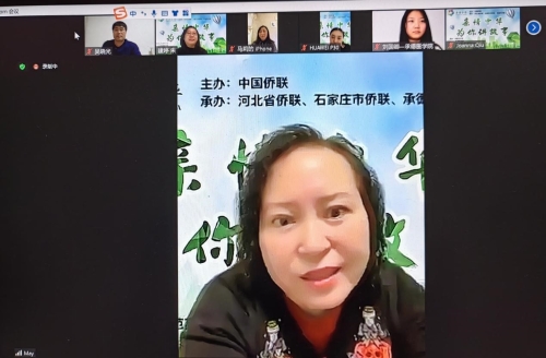 承德市侨联副主席马莉致辞 赵雪梅发言,她首先感谢河北省侨联、承德医学院对冬令营的大力支持,并对参加此次活动小营员表示祝贺。她表示,此次网上营活动意义非凡,课程安排内容多样,形式活泼,让小营员们收获颇丰。学习传统文化课程,领略了传统文化的魅力,这是一段非常宝贵的经历,活动加深了海外华裔青少年对中华传统文化的深入了解和热爱。她希望营员们不要因活动结束而停止探索,继续努力,携梦起航。