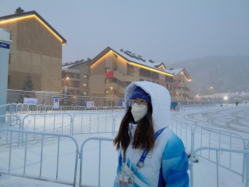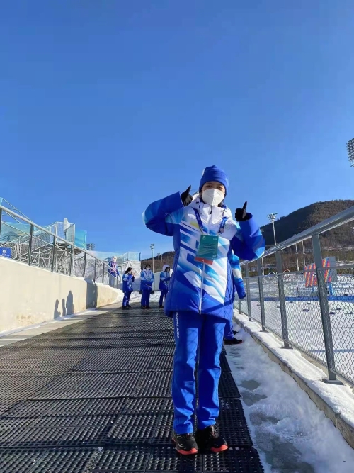 肖凌在国家越野滑雪中心 服务于国家越野滑雪中心的反兴奋剂领域志愿者邵永琛同学说:“‘纯洁的冰雪,激情的约会。’我的任务就是让本次参赛运动员的比赛都如雪花一样干净、纯洁。我的工作主要是通知运动员,陪护运动员前往兴奋剂检查站,观察运动员在过程中有无不规范的行为措施。冬奥会开赛以来,我在主管老师的指导中进行了一遍又一遍的彩排和演练,与同学们团结合作、齐心协力,一起查缺补漏,避免失误,确保在工作中万无一失。参与志愿服务,奉献的是汗水,体验的是感动,净化的是心灵,收获的是快乐,提升的是境界,实现的是真正的人生价值。作为一名陪护员,我要站好纯洁冬奥会的第一班岗。对这份事业的情怀和责任感,是我不断付出和奉献的动力。”