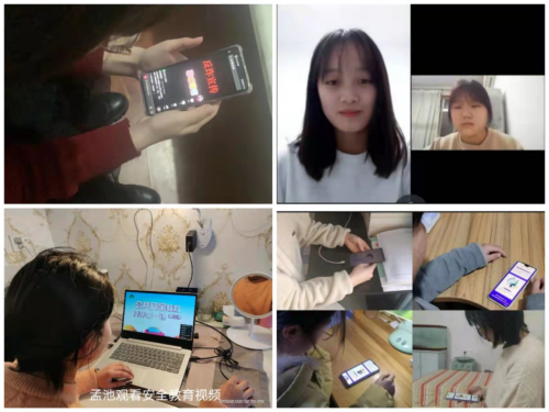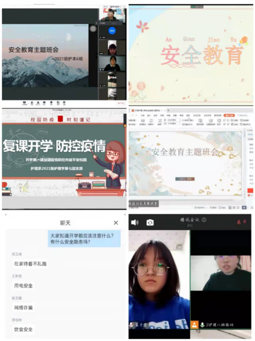 本次活动分为线上和线下两个部分。线上,各团支部开展安全知识教育主题班会,内容涵盖疫情防控、网络反诈、突发事件处理等方面,为同学们普及安全知识,筑牢安全防范意识,并通过互动讨论使同学们了解潜在的危险因素及防范措施等。线下,各团支部成员响应号召开展了形式多样的志愿服务活动:疫情防控志愿服务中,同学们穿上防护服,积极参与社区和村庄值守、体温检测、核酸检测和秩序维护,身体力行争做疫情防控的卫士;暖心帮扶志愿服务中,同学们积极帮助孤寡老人和空巢老人做家务、置办年货、贴对联,以心暖心,传递温情。此外,还有很多同学参与关爱留守儿童、春运“暖冬行动”、道路除雪等,身体力行践行志愿服务精神,展现新时代青年的责任与担当! 大学的第一个假期,同学们远离校园、服务家乡,用行动彰显使命,用实干书写担当,在志愿服务中筑牢了责任感、使命感,同时明确了前进的目标和努力的方向。身为承医学子,同学们将继续弘扬承医精神,践行志愿服务理念,让青春在拼搏奋斗中闪光! (点击每张图片即可查看原图)  各团支部开展安全教育主题活动