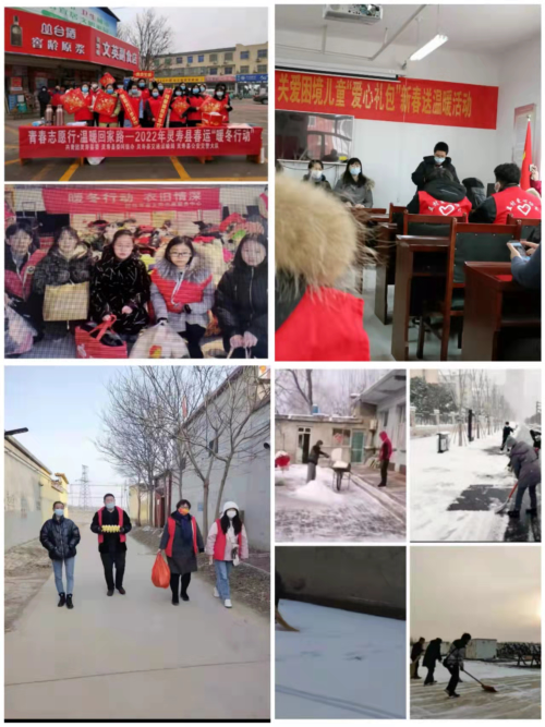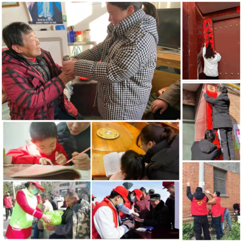 同学们进行疫情防控志愿服务活动  同学们暖心帮扶孤寡老人和留守儿童  同学们参与春运暖冬行动、义务除雪等活动