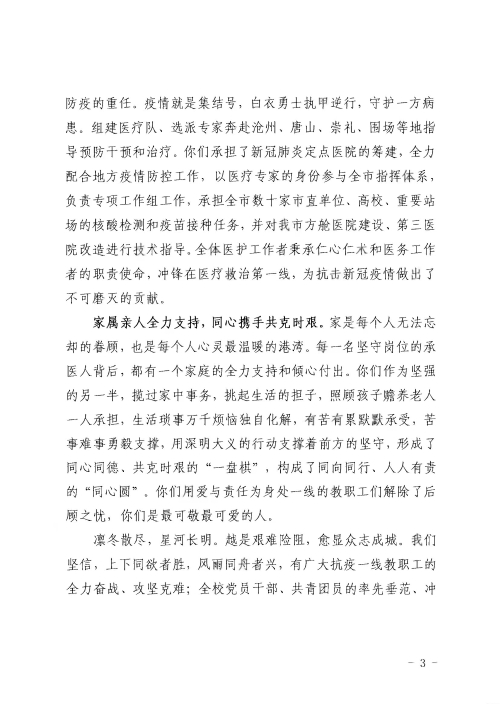 承德医学院党委致坚守在疫情防控一线的全体师生员工及家属们的慰问信.pdf