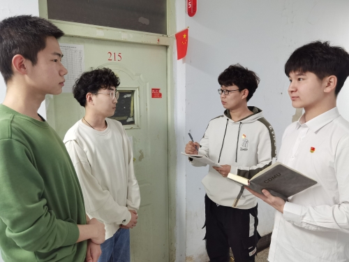 学生党员深入宿舍宣传疫情防控相关知识,了解学生情况
