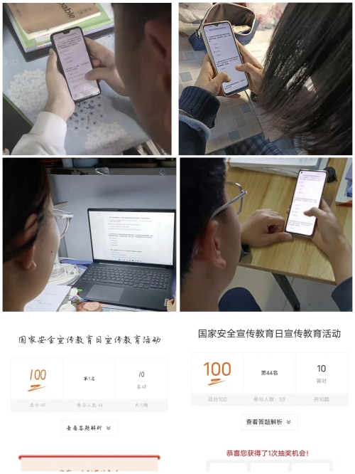 线上宣讲 4月11日,基础医学院2021级第二学生工作办公室利用问卷星形式,组织同学们参与“国家安全,你我同行”线上答题活动,并根据得分情况以及班级参与率情况对参与的班级进行评选,评出最佳答题奖4名,最佳组织奖3名,最佳团队奖3名。以赛促学,让同学们在答题的过程中深化国家安全教育知识学习。竞赛完成后,同学们积极参加“反邪教警示教育进校园”活动,观看警示教育宣传片,参与线上警示教育活动,提高对反邪教知识的知晓率,增强防范邪教的意识,自觉抵制邪教渗透。