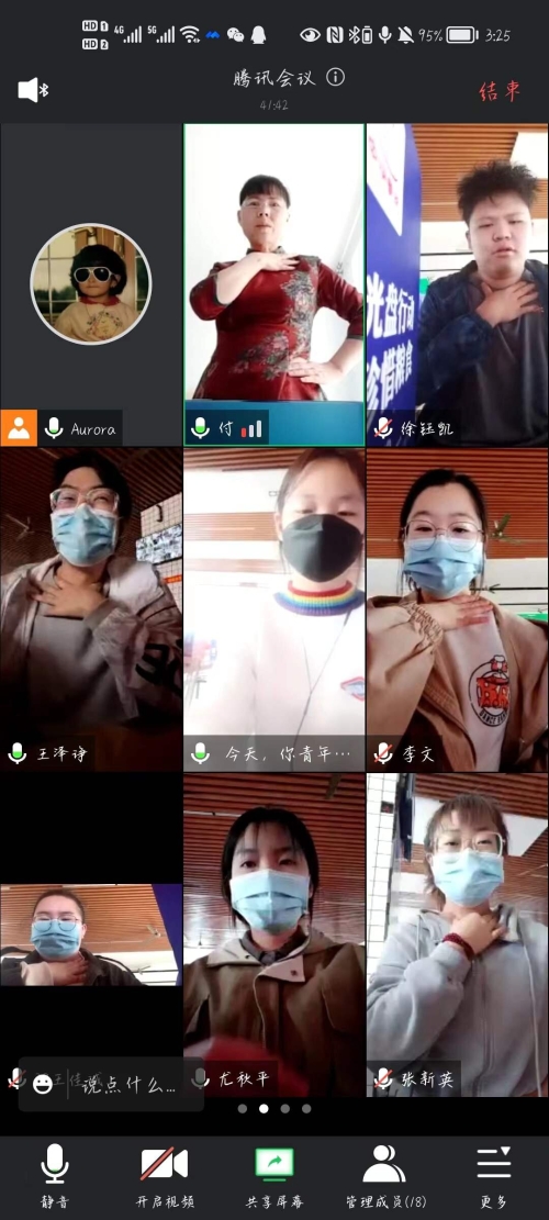 授课方式--一对一连麦指导学生 唱歌既是美的艺术又是全身运动,尤其能扩大肺活量,提高心肺功能,对预防呼吸道疾病有很好的帮助。在付老师的鼓励引导下,同学们除了练习歌唱技巧,学唱红歌之外,每天在群里坚持打卡锻炼,强身健体,愉悦身心,力争练出“铁肺”,给封闭管理的校园生活增添乐趣,为抗击疫情做出自己的贡献,疫情过后将带领学生走向社会,开展“为你唱歌”志愿服务活动,为百姓演出,服务社会,奉献他人,提升自己,向社会宣传学校,同时引导激励学生做有爱心、有社会责任感的新时代大学生。