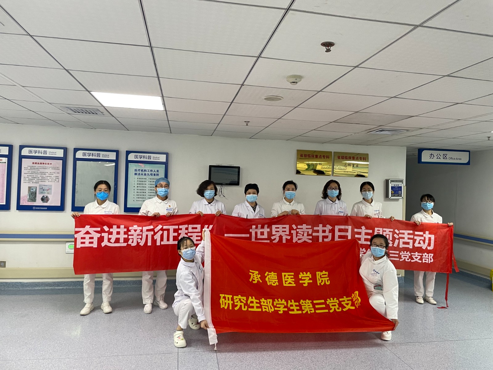 报道来源:承德新闻网 报道如下: 2022年4月23日是第27个“世界读书日”,为落实立德树人的根本任务、迎接党的二十大胜利召开,近日,承德医学院研究生学院党委学生第三党支部在承德医学院附属医院护理部的大力支持下,举办“阅读新时代,奋进新征程”系列主题党日活动。活动通过走进儿科病房发放读书宣传手册、党团员知识竞赛答题等方式,营造全民共同参与的阅读氛围,带领大家在书香中感悟生命之美好。