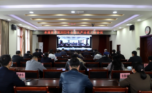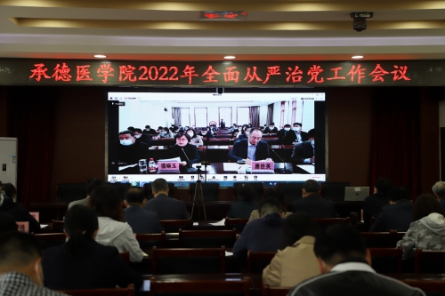 我校于2022年4月28日8:30,在行政楼412会议室举行承德医学院2022年全面从严治党工作视频会议。会议采用线上线下相结合的方式,通过腾讯会议召开。全体校领导、党委委员、纪委委员、处级以上干部、二级党组织书记、党支部书记及纪检委员、附属医院班子成员参加会议。学校党委副书记、校长唐世英主持会议。 (点击文中每张图片即可查看其原图)