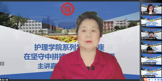 2022年5月12日19:00,护理系邀请福建医科大学护理学院原院长姜小鹰教授为师生作了题为“在坚守中拼搏,在开拓中进取”的线上专题讲座。讲座由护理系副主任郑纪宁主持,护理系主任田建丽、护理系全体教师、硕士研究生导师、研究生实践基地的临床带教教师及全体研究生与部分在校生代表参加了此次讲座。