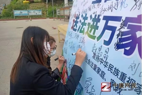 党委宣传统战部学生网评员在教学楼开展有关《中华人民共和国民法典》与《中华人民共和国家庭教育促进法》的宣讲,并邀请师生在活动展板上进行签字,号召师生们将学法、知法、守法、普法落到实处,积极推进法治校园建设。