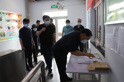 对学校大门处的安全管理工作进行检查 校领导对各项疫情防控工作给予了充分肯定,同时对检查发现的问题现场给予整改建议,要求学校相关单位部门认真开展风险隐患排查治理。校领导指出,校园人员密集,疫情传播风险较高,一定要采取更有针对性的防控措施,千方百计确保校园绝对安全,让学生、家长放心安心。各单位要加强组织领导,严格落实安全责任;要全方位做好安全工作,强化安全教育,切实增强防范意识;加强校园管控,全面做好疫情防控。
