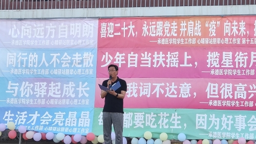 为进一步提高我校心理健康教育工作的实效性和针对性,培养学生自尊自信、理性平和、乐观开朗的心态,促进文明和谐校园建设,喜迎党的二十大的到来,2022年5月25日下午,由学生工作处、共青团承德医学院委员会和心理学系联合主办,心晴驿站朋辈心理工作室和心理学系学生会承办的我校第十五届“5.25”大学生心理健康节闭幕式在学校阳光运动场顺利举行。副校长张凯出席闭幕式。 (点击每张图片即可查看原图)