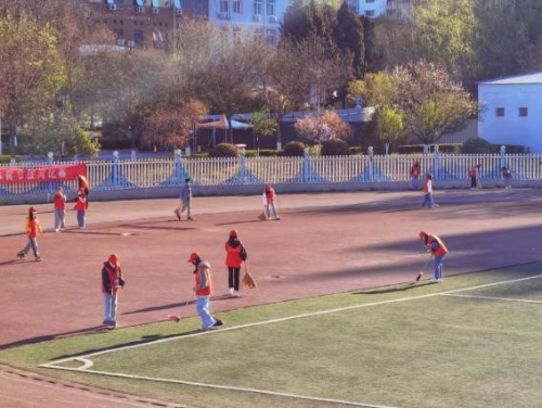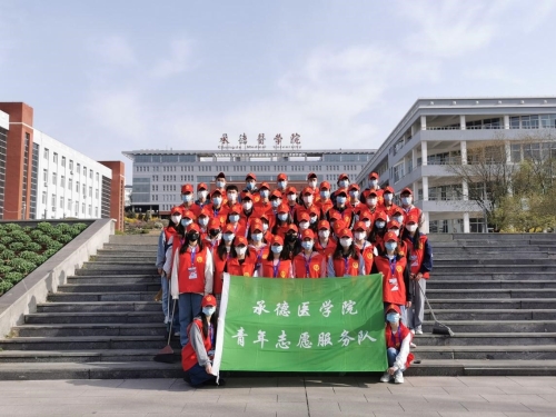 全体人员合影留念 “劳”——“劳之所起,净待归来”志愿服务 4月23日至5月1日上午每天清晨6:45,“劳”——“劳之所起,净待归来”在承德医学院校园内开展。组织青年志愿者校内清扫活动,对学校田径场、花坛、教学楼门口进行了垃圾清理,在实践中深化劳动教育,不仅净化了校园空间,美化了校园环境,更是让同学们深刻体会到五一劳动节“无私奉献、积极劳动”的道德风尚。