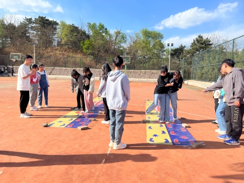 为学生颁发参与奖品 “体”——“春拾慢跑,红暖承医”趣味运动会 4月30日14:00,以“体”——“春拾慢跑,红暖承医”之素质拓展在承德医学院阳光运动场、图书馆前、九号留学生公寓、涟芳桥、薰衣草广场、圆盘花坛开展。活动以青年学子喜爱的“打卡”形式,在校内设置多个任务点,参赛同学跑步至各个任务点完成相应任务后领取奖励。活动包括“四行诗”“金豆搬家”“齐心协力”等诸多素质拓展项目,约1200余名在校生参加了此次活动,让同学们在欢快的氛围中达到强身健体的目的,同时也培养了同学们的团队意识和协作能力。