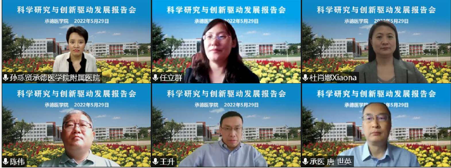 为推进学校“十四五”科学研究发展规划、促进科技兴校,加强创新驱动引领高质量发展,坚持科学研究“四个面向”,加强基础与临床科研合作,大力推进学校科技创新团队建设、有效促进学校科技发展,2022年5月29日上午,科技处邀请河北省科学技术一等奖获得者王升、杜肖娜和陈伟教授,为我校师生进行“科学研究与创新驱动发展”主题报告会,会议采取腾讯研讨会方式进行。校长唐世英出席会议并致辞,主题报告会由我校附属医院院长孙瓅贤担任学术主持。学校及附属医院各院系负责人、教研室、实验室主任和副主任、硕士生导师、博士、学科学术带头人、科技创新团队成员等200余人参加会议,会议由科技处处长任立群主持。 (点击每张图片即可查看其大图)