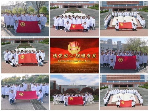 “凝心聚力为同学们解难题、办实事”团干部座谈会 “请党放心 强国有我”重温入团誓词活动和医学生誓言宣誓活动 4月30日至5月1日,基础医学院2020级第二团总支全体成员依次在学校图书馆、书山、花坛、涟芳桥等地组织进行入团誓词和医学生誓言宣誓并录制视频。团员们身着白衣,佩戴团徽,排成整齐的队伍,展开团旗,举起紧握的右拳,铿锵有力地道出庄重的誓言,同学们用誓词表达了对共青团的热爱和恪守医德的决心。此次活动进一步强化了团员意识,激励着广大团员青年以更强的社会责任感和历史使命感,激扬青春,励志图强。