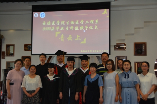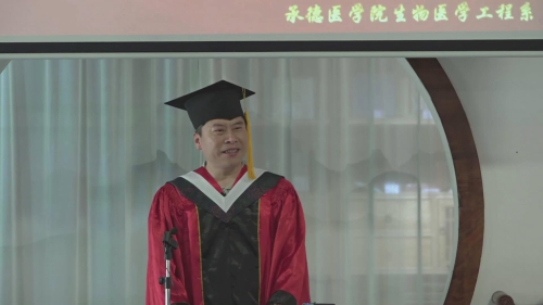 典礼开始前,播放为2022届毕业生精心制作的视频。校园里的一草一木、生活中的点点滴滴、同学们笑意盎然的脸庞、老师们的殷切期望……都在镜头前呈现出最美好的模样。 全体师生起立,奏唱国歌,毕业典礼拉开序幕。李葵花宣读生物医学工程系2022届本科各专业毕业生名单、授予学士学位名单,张静敏宣读生物医学工程系2022届河北省优秀毕业生名单。毕业生代表陈逸瞳发言,回顾了难忘的大学四年时光,表达了对于母校和老师的感谢与不舍。郭力菲代表在校生对2022届毕业生们的顺利毕业表示衷心的祝贺,并表示会以学长学姐们为榜样,用自己的实际行动为承医的发展进步贡献自己的力量。贝翠琳作为教师代表发言,字里行间饱含着老师们对毕业生的由衷祝福和殷切期盼。她希望大家保持热爱、奔赴山海、开疆拓土、追逐梦想、励志拼搏、绽放光彩,祝愿大家眼里有星辰大海,心里有繁花似锦。 许士奇、王阳为2名来到现场的毕业生拨穗,其余毕业生线上拨穗。2022届毕业生们的的大学生涯就此划上圆满的句号,他们即将踏上新的征程,开启人生新的篇章。 许士奇作毕业寄语。他以承德医学院1992级校友的身份欢送2022届毕业生,祝贺大家在经历四年的刻苦学习和生活历练后,怀着一种勇于克服自我、完美自我的心态,取得了圆满的成绩,并将大学的经历变成了自己成长中的养分。他期望毕业生们有积极向上的心态、敢于拼搏的勇气,乐观面对今后学习、工作、生活中的挑战,收获幸福的人生。 涟芳桥边清风徐徐,又是一年毕业季,盛夏的光影映照着别离。数载日月兼程,无惧风雨,在金秋相聚,在盛夏分离,青春的诗歌将不断传颂,“承医生工”的故事仍在继续。祝愿2022届毕业生青云直上,鹏程万里! (点击每张图片即可查看原图)