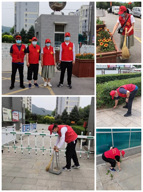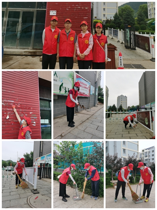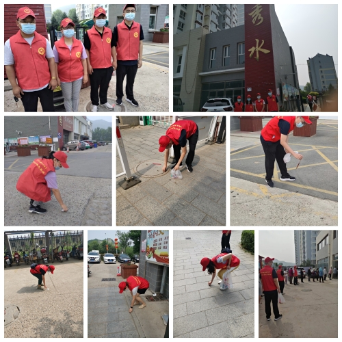6月20日上午,机关党委王学娟、杨明明、罗建、赵利兵、张天叶、王佳萍、许洪芳在秀水花园小区开展志愿服务